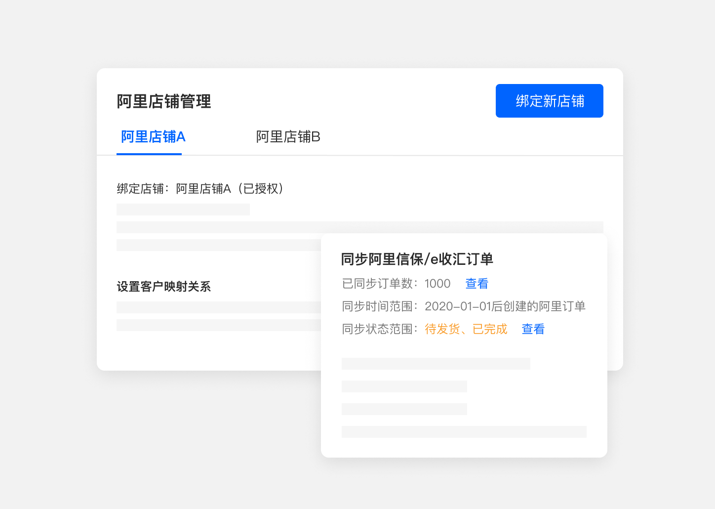 支持企业多店铺的“阿里商品、信保订单/E收汇订单“全部导入并自动同步,实现企业、国际站内外部所有订单全流程一站式管理。